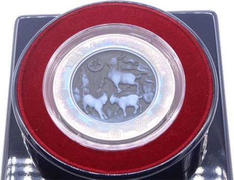 - 3 Unzen Silber Ruanda 1000 Francs 2015- Jahr der Ziege- Antik-Finish mit Farbe