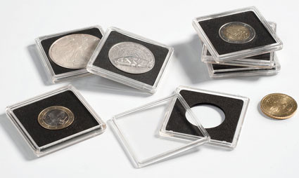 Quadrum die eckige Münzkapsel mit System . Erhältlich für alle gängigen Münzen von 14 mm bis 41 mm. Die Kapseln sind Säure - und Weichmacherfrei. Mit diesem System können Sie Münzen verschiedener Größe in nur einem Sammelsystem unterbringen