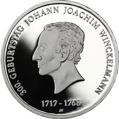Die 20-Euro-Sammlermünze ehrt den 300. Geburtstag von Johann Joachim Winckelmann, einem deutschen Archäologen, Bibliothekar, Antiquar und Kunstschriftsteller. Er gilt als Begründer der wissenschaftlichen Archäologie und Kunstgeschichte. Die Münze besteht aus 925er Sterlingsilber und ist in Deutschland gesetzliches Zahlungsmittel. Sie hat einen Durchmesser von 32,5 mm und ein Gewicht von 18 Gramm. Mit der 20-Euro-Münze wird Winckelmann auch numismatisch geehrt. Die Erhaltung ist Polierte Platte (Spiegelglanz), die höchste Prägequalität, die eigens für Münzsammler, in geringer Auflage geprägt wird.