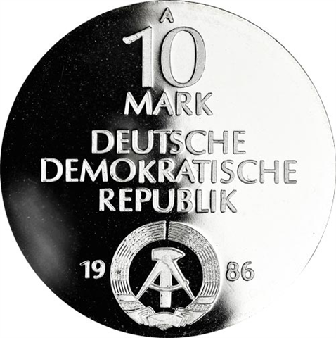 Die 10 Mark Münze der DDR aus dem Jahr 1986 ist dem 275jährigen Bestehen der Berliner Charite gewidmet.