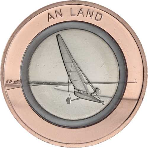 Die Münzen wurden mit den Mzz. A D F G und J geprägt. Es ist die zweite Ausgabe der im Jahr 2019 begonnenen dreiteiligen Serie „Luft bewegt“. Im Fokus dieser Serie stehen junge dynamische Trendsportarten, bei denen die Fortbewegung ausschließlich durch Luft bzw. Wind erfolgt. Die 10-Euro-Münzen „An Land“ bestehen aus einem inneren Kupfer-Nickel-Kern, einem äußeren Ring aus Rotbronze sowie einem zwischen den beiden Metallkomponenten eingefügten lichtdurchlässigen Kunststoffring. Sie haben je ein Gewicht von 9,8 Gramm und werden in den beiden Prägequalitäten Stempelglanz und Spiegelglanz hergestellt. Der Entwurf der Sammlermünze wurde von dem Künstler Andre Witting aus Berlin gestaltet. Die Bildseite zeigt einen Strandsegler. Das Strandsegeln ist ein Sport, der an der Grenze zwischen Wasser und Land stattfindet. Der Entwurf konzentriert sich auf die wesentlichen Merkmale, die diesen Sport ausmachen. Er zeigt auf sehr elegante und reduzierte Weise den Segelwagen, die sogenannte Yacht, in der Weite der Landschaft. Die Wertseite zeigt einen Adler, den Schriftzug „BUNDESREPUBLIK DEUTSCHLAND“, Wertziffer und Wertbezeichnung, die Jahreszahl 2020, die zwölf Europasterne sowie - je nach Prägestätte - das Münzzeichen „A“ (Berlin), „D“ (München), „F“ (Stuttgart), „G“ (Karlsruhe) oder „J“ (Hamburg). Der Münzrand wird glatt und ohne Struktur ausgeführt. Quelle BVAWir nehmen die Zuteilung des Münzzeichen nach Verfügbarkeit vor.