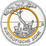 Diese Münze ist die zweite Ausgabe der neuen Serie "Klimazonen der Erde", die im Frühjahr 2017 mit der Ausgabe "Tropische Zone" begann und 2021 mit der "Polaren Zone" enden wird. Insgesamt besteht diese Serie aus fünf Münzen, die jedes Jahr ein anderes Thema und eine unterschiedliche Farbe des Polymerringes haben. Die Farbzuordnung der Polymerringe erfolgt entsprechend den vorherrschenden klimatischen Verhältnissen der einzelnen Zonen anhand der Temperatur-Farbskala: 2017 Tropische Zone Rot, 2018 Subtropische Zone Orange, 2019 Gemäßigte Zone Grün, 2020 Subpolare Zone Türkis, 2021 Polarzone Violett. Die für alle Münzen der Serie verwendete Wertseite wurde von der Künstlerin Stefanie Radtke aus Leipzig gestaltet, die Bildseite stammt von dem Künstler Patrick Niesel aus Schwaig. Die Jury begründete ihre Entscheidung wie folgt: "Das Thema der winterfeuchten Subtropen mit einem mediterranen Klima wurde durch diesen Entwurf auf überzeugende Art und Weise umgesetzt. Die für diese Klimazone typische Flora und Fauna, wie die domestizierten Ziegen und der oft von ihnen gestaltete macchieartige Charakter der Strauchlandschaft, werden zutreffend abgebildet. Der orangefarbene Ring fokussiert dabei auf eine typische mediterrane Weideszene mit einer Verbindung aus Küste und Meer. Der im Mittelpunkt stehende Baum steht stellvertretend für viele Arten mit einer Schirmkrone, die in dieser Klimazone vorherrschen. Der Künstler vermochte es, den erzählerischen Charakter der ersten Münze der Serie Klimazonen der Erde - Tropische Zone - aufzunehmen und die Adlerseite harmonisch einzubinden."