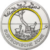 Die Motivseite der Münze zeigt die für die gemäßigte Zone besonders prägende kulturlandschaftliche Entwicklung. Diese wird durch den Ackerflur inklusive des Waldsaums in gelungener Weise dargestellt. Der Feldhase ist ein typischer Vertreter der gemäßigten Zone. Der typische Wechsel der Jahreszeiten wird durch den herbstlichen Eichenast zum Ausdruck gebracht. Das Schattenbild der Münze beschreibt den landschafts- und zonenprägenden Laubmischwald.