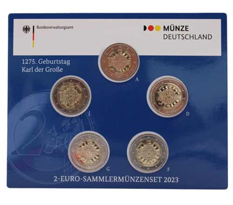 Deutschland 5 x 2 Euro 2023 Karl der Große Stempelglanz Mzz. A – J