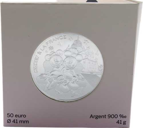 - Frankreich 50 Euro 2018 Silber, aus der Serie Mickey & La France "Monmartre - Sacré-Coeur" im Blister