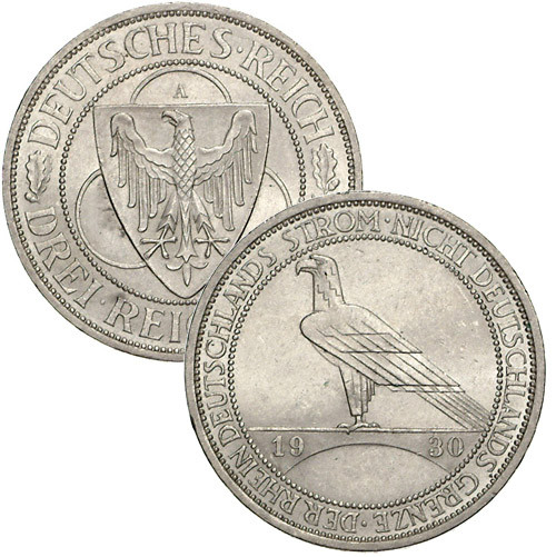 Weimarer Republik 3 Reichsmark Silber 1930 – Befreiung des Rheinlandes (Jäger 345)