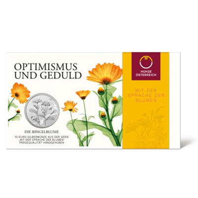 Österreich 10 Euro Silber 2022 - Sprache der Blumen - Ringelblume im Folder